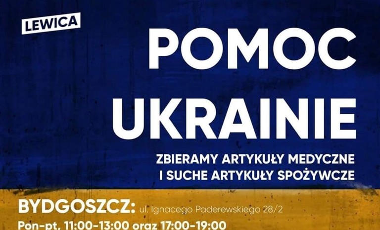 Biuro grudziądzkiej Nowej Lewicy otwiera się na dobroczynne gesty mieszkańców. Jest lokal, są dyżurujący ludzie i zajmą się logistyką. To nie jest ważne z jakim logiem partyjnym. Teraz liczy się każdy rodzaj pomocy Ukrainie.